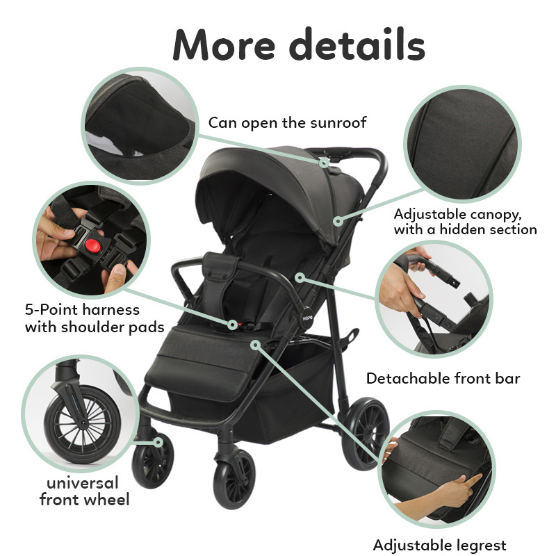 Questo è un passeggino compattoPresenta numerosi vantaggi, come il design pieghevole con una sola mano e lo schienale regolabile, che lo rendono facile da piegare e comodo per la cura dei bambini. La nostra fabbrica vanta oltre 15 anni di esperienza in passeggino per bambini produzione. Siamo certi di poter garantire una qualità migliore allo stesso prezzo. Inviateci una richiesta.